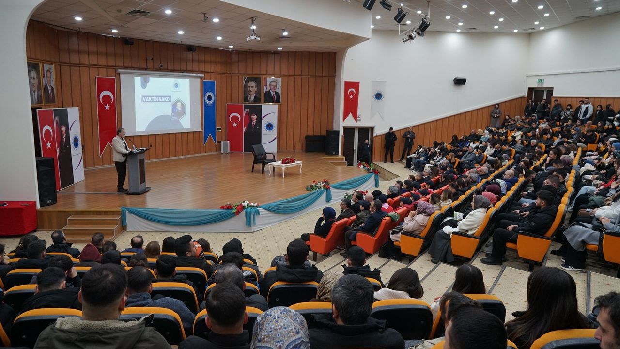 Merkez Kampüs Konferans Salonu’nda düzenlenen “Vaktin Nakdi” başlıklı konferans, yoğun katılımla gerçekleştirildi.