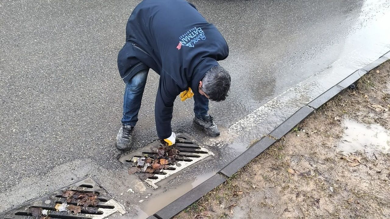 Hazırlanan program kapsamında ekipler, özellikle ana arterlerde bulunan yağmur suyu mazgallarını tek tek kontrol ederek temizlik çalışması gerçekleştiriyor.