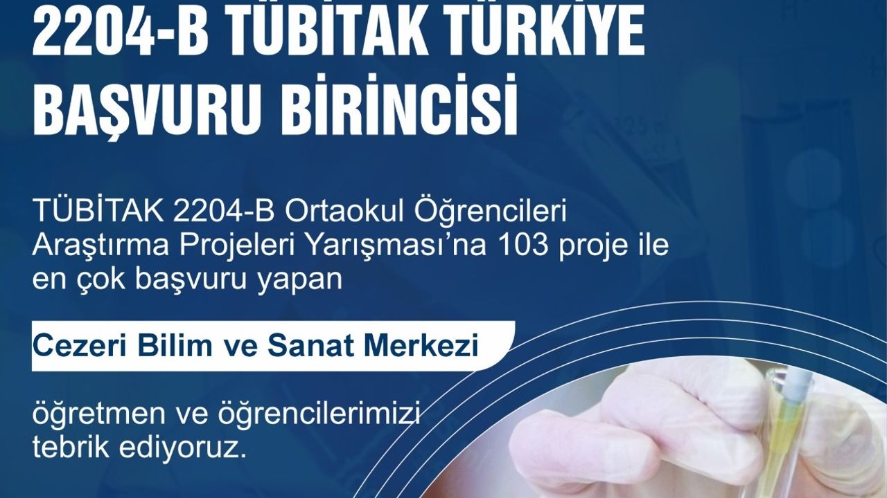 Cezeri BİLSEM, 103 proje başvurusu ile Türkiye genelinde en fazla başvuru yapan kurum olarak Türkiye birincisi oldu.