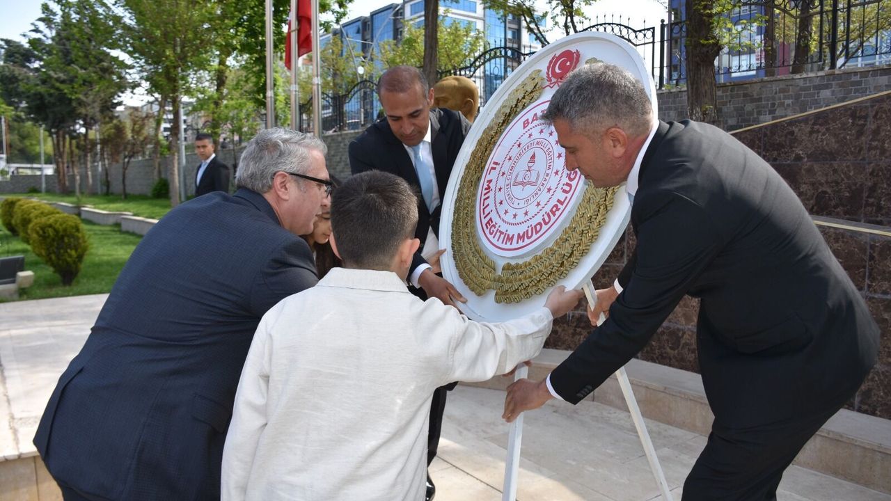 Batman Valiliği bahçesinde gerçekleştirilen törende, İl Millî Eğitim Müdürlüğü çelengi, İl Millî Eğitim Müdürü Yaşar Ciğer tarafından iki öğrenci eşliğinde Atatürk Anıtı’na sunuldu.