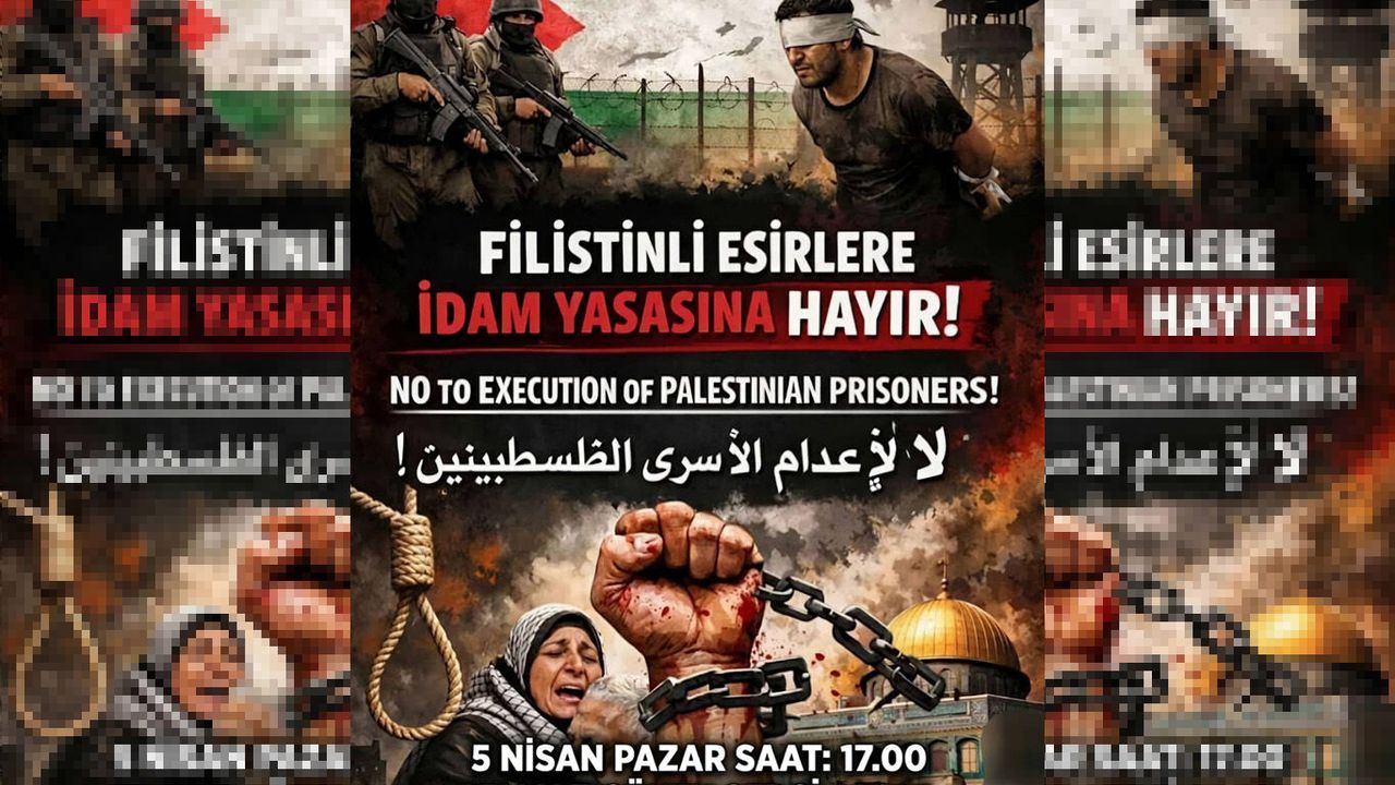 "Filistinli esirlere idam yasasına hayır" temasıyla gerçekleştirilecek etkinlik, 5 Nisan Pazar günü saat 17.00'de Yılmaz Güney Sergi Alanı'nda yapılacak.