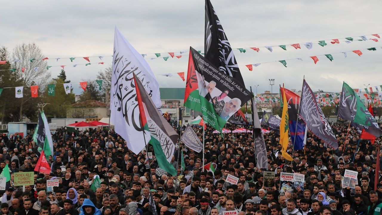 Alanda kadın ve erkekler için ayrı bölümler oluşturulurken, gönüllü görevliler katılımcıları yönlendirdi. Vatandaşlar ellerinde tevhid bayrakları ve Filistin bayraklarıyla meydanı doldurdu. “La İlahe İllallah Muhammed Resulullah” yazılı büyük pankartlar dikkat çekti.