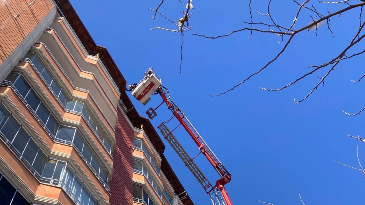 Olay, Pınarbaşı Mahallesi Turgut Özal Bulvarı üzerinde, Ziraat Bankası yanında bulunan bir apartmanın çatı katında meydana geldi. İhbar üzerine bölgeye sevk edilen itfaiye ekipleri, mahsur kalan kuşun kanatlarının buzla birleştiğini, bu nedenle hareket edemediğini ve donarak ölmek üzere olduğunu tespit etti.