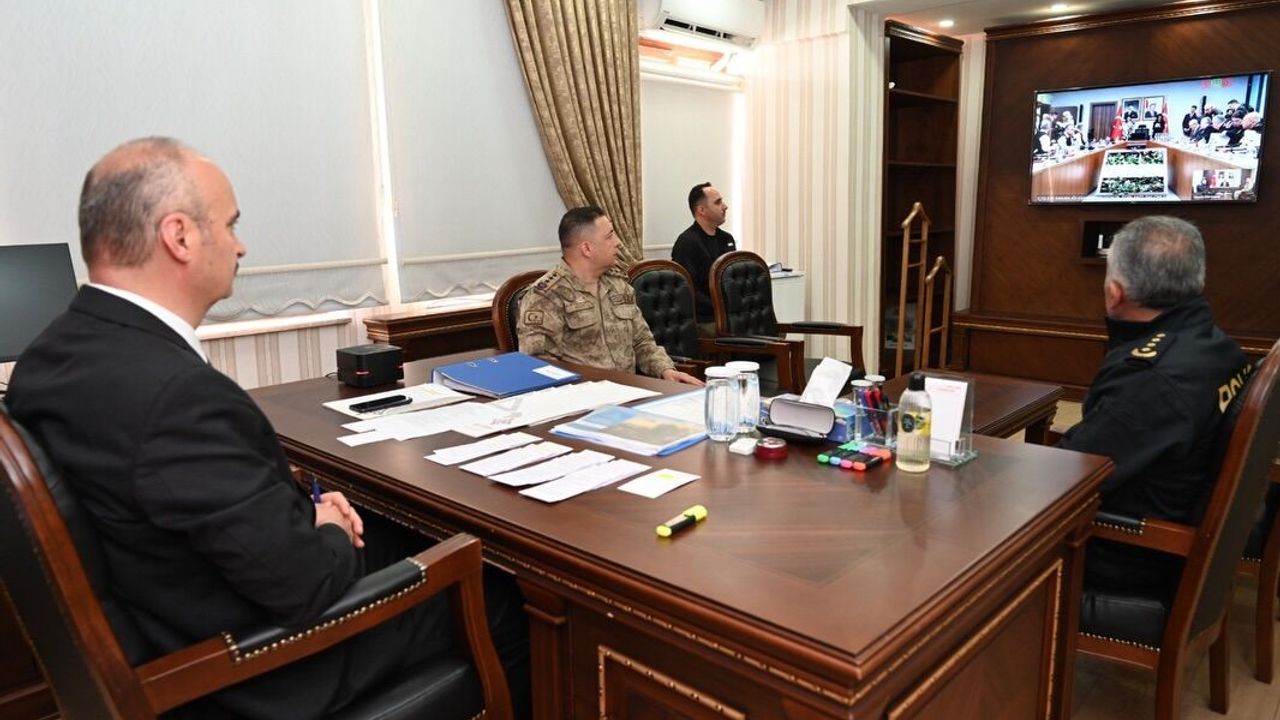Valilik makamından gerçekleştirilen dijital zirvede Vali Canalp’e, şehrin güvenlik bürokrasisinin en üst isimleri eşlik etti. Toplantıda; İl Emniyet Müdürü İbrahim Kaba, İl Jandarma Komutan Vekili Jandarma Albay Veysel Aksoy hazır bulundu.