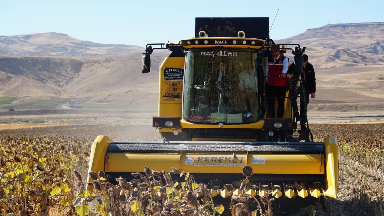 Ardından biçerdöverin tarlaya girmesiyle ayçiçeği hasadı coşkuyla başladı. Katılımcılar, tarladaki ilk hasat anına tanıklık ederek üreticilerin sevincini paylaştı.