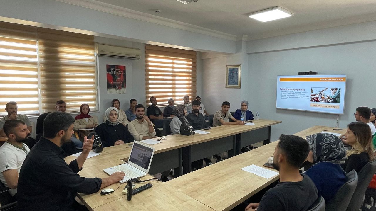 İl Sağlık Müdürlüğü bünyesinde görev yapan eğitim hemşiresi tarafından verilen eğitimde, genç çiftlere evlilikte iletişim, aile içi roller, sağlıklı ilişki kurma, çatışma çözme yöntemleri ve üreme sağlığı gibi konularda kapsamlı bilgiler aktarıldı.
