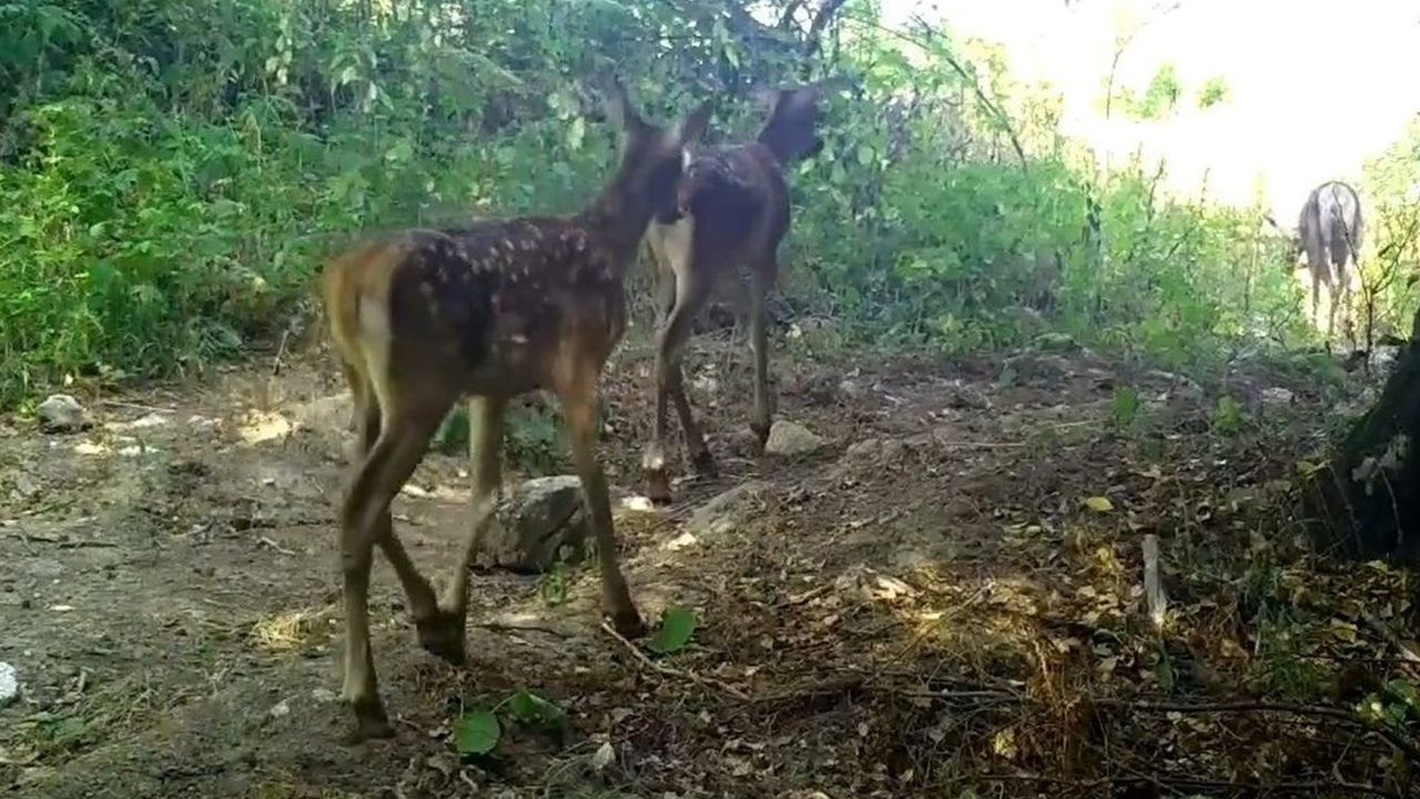Görüntülerde bir kızıl geyik ailesinin orman içinde serbestçe dolaştığı ve beslendiği anlar yer alıyor. Yetkililer, bu tür görüntülerin yaban hayatının korunması ve izlenmesi açısından büyük önem taşıdığını vurguladı.