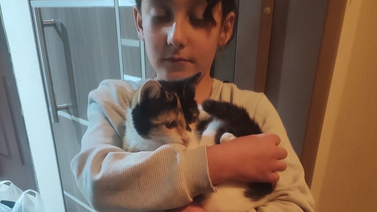 Kurtarılan kedi sahibine teslim edilirken, büyük bir sevinç yaşayan genç kız, itfaiye ekiplerine teşekkür etti.
