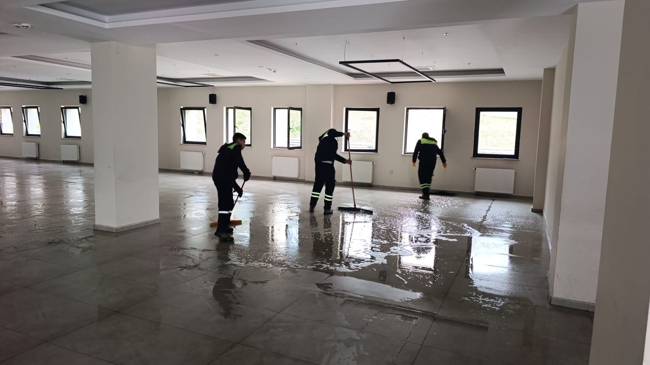 Ekrem Canalp’in talimatları doğrultusunda harekete geçen ekipler, küçük süpürge aracıyla otopark, meydan ve ortak kullanım alanlarında detaylı temizlik gerçekleştirdi.