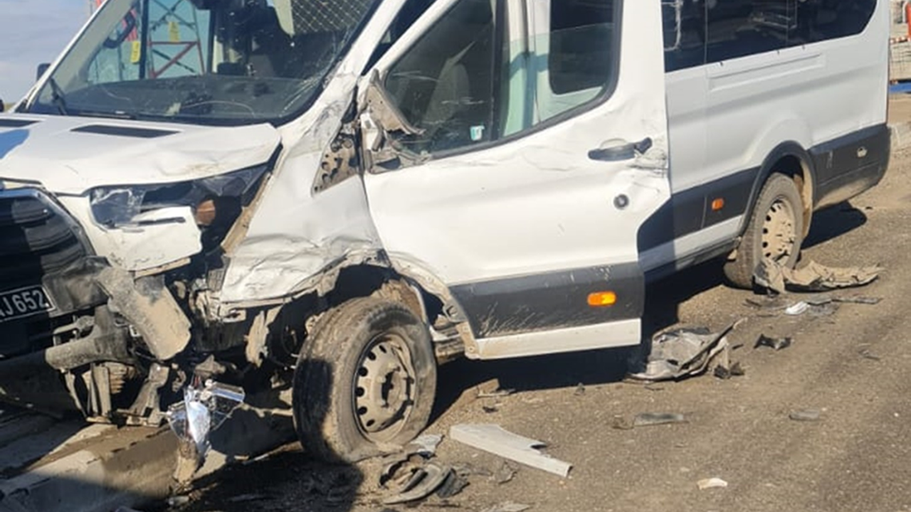 OSB yolunda meydana gelen trafik kazasında yolcu minibüsü ile bir tır kontrolden çıkarak yoldan çıktı.