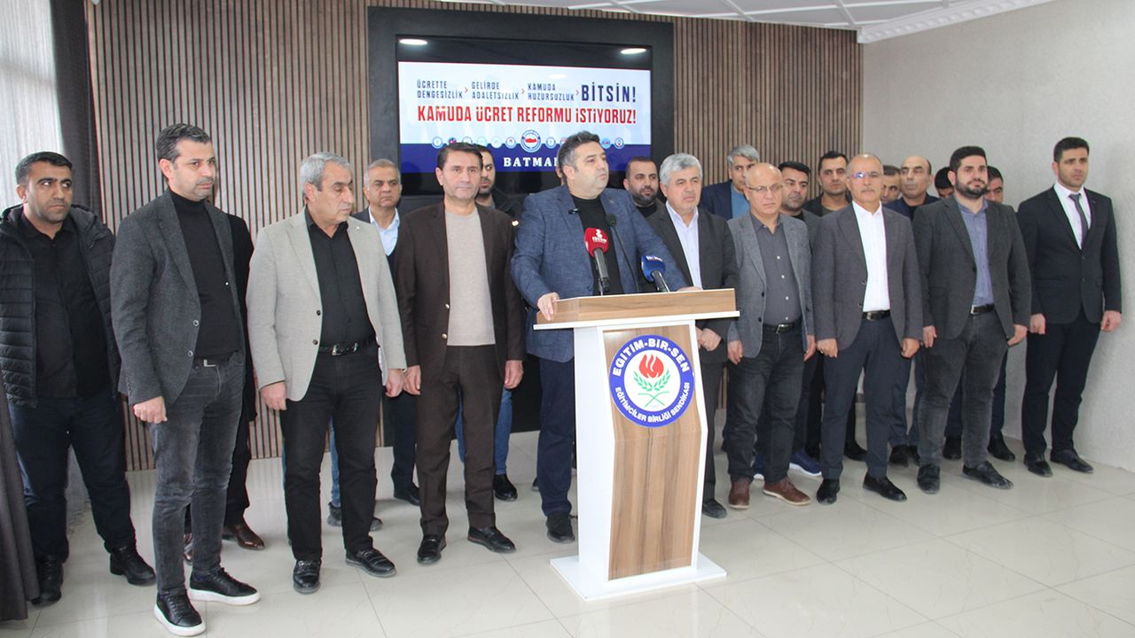 2026 yılının memurlar için ilk maaş gününde Memur-Sen Batman İl Başkanlığı'nda basın açıklaması düzenleyen Memur-Sen Batman İl Başkanı Şehmuz Önlü, kamu görevlilerinin yaşadığı ücret adaletsizliğine dikkat çekti.