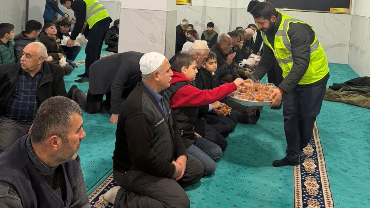 Dernek üye ve gönüllülerinin katılımıyla gerçekleştirilen programda, kandil gecesinin manevi atmosferi içerisinde cami cemaatine ikramlarda bulunuldu.